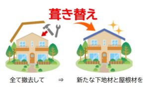 既存屋根を解体・撤去して、新たな屋根材に葺き替えること。
