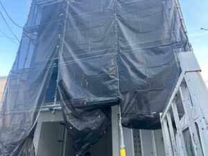 まずは周りの養生シートを外してから、足場を解体していきます。