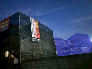 足場が組みあがるころには少しずつ陽も暮れてきますか❓