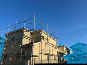 しっかりと足場を組むことで、作業効率もあがり、職人さんも安全に作業ができるのです。