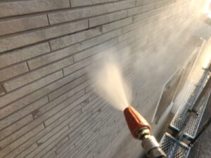 シーリング工事が完了し、乾燥もできたので高圧洗浄を行っていきます。
