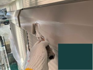 シャッターボックス上塗り1回目が乾燥後、仕上げの上塗り2回目を塗っていきます✨