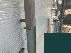 雨樋(竪樋)は支持金具のみ錆止めを塗り、上塗り1回目を塗り