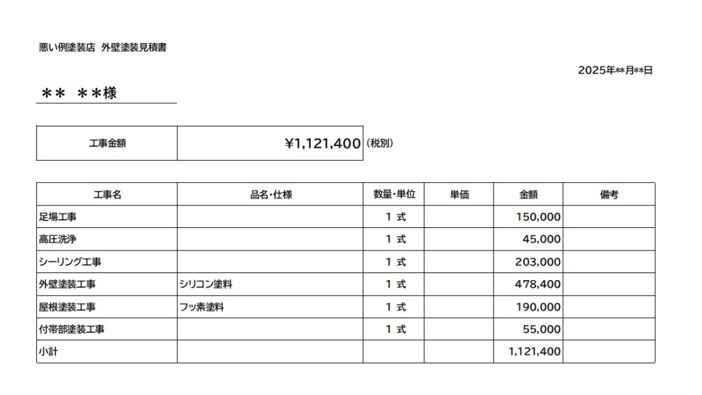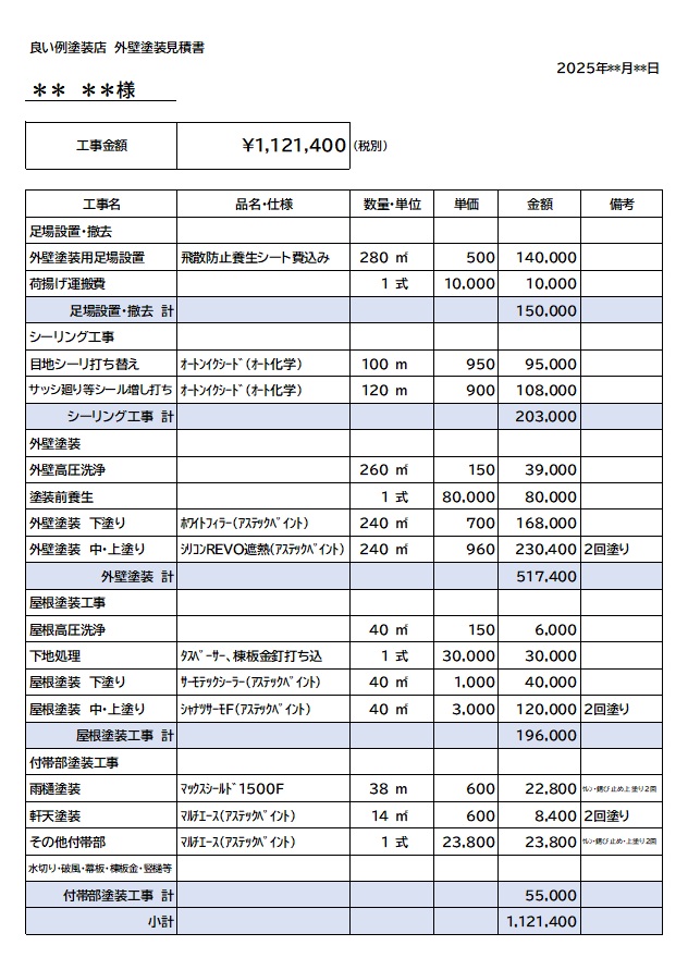 見積書の情報量はその塗装会社の信頼度とも言えます。