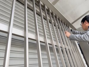 足場を組む前に、ガレージのカーポート屋根を取り外し、足場を通していきます。
