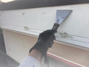 残った古い塗膜が浮いていたりしたら新たに塗装を行ってもそこから浮いてしまったりするのでしっかりとケレンします。