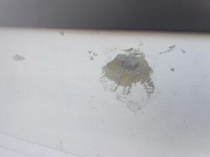 プライマー塗布後、補修材を使ってグレーになっていた箇所(塗膜がめくれていた)を補修していきます。ヘラを使って周囲になじむように補修を行います。