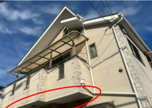 赤く囲った場所、水切りの上なのですが、こちらも補修を行っていきます。