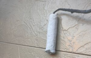 ローラーで撫でているように見えますが、透明の下塗り材を使用して下塗りしています(#^^#)