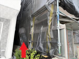 飛散防止養生シートの向こう側でガサガサ・・・。