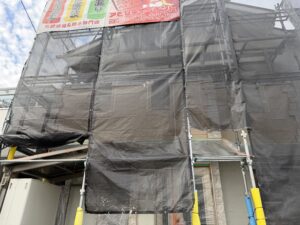 まだお披露目はできないので、飛散防止養生シートのスキマから生まれ変わっていくステキなおうちを想像して下さい(#^^#)