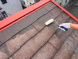 屋根の下塗りも透明の下塗り材を使用していきます。