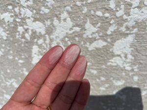 重度になると白い粉はべったりと付き、外壁も触った跡がクッキリと残るようになります。