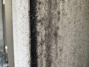 窓下や外壁の凹凸部分などに黒いスジの汚れがある場合、防汚性能の劣化しているサインです。