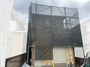 飛散防止養生シートで周囲を囲み足場組は完了です(‘◇’)ゞ