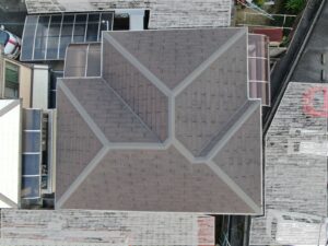 左側に映っている屋根は4年前に施工したT様のお家の屋根です✨