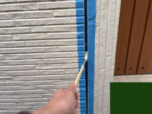 目地の端に養生テープを貼るのは外壁を汚さないためです。