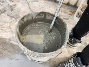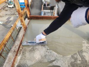 このまま防水塗膜を塗ったら床面がそのまま凸凹な状態になって凹んだ箇所に水が溜まってしまい劣化も進んでしまうなんてことも💦