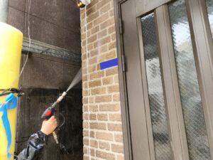外壁って細かい凹凸があるのでその凹んでいる箇所にホコリや汚れ、コケなどが溜まっているので取り除けるところは高圧洗浄でキレイにします。