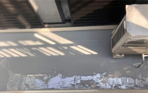 床面の工事の際は浮かせて作業を行いますので、室外機下もちゃんと防水塗膜がつきますよ(‘◇’)ゞ