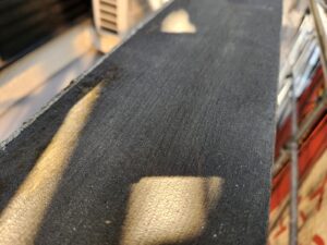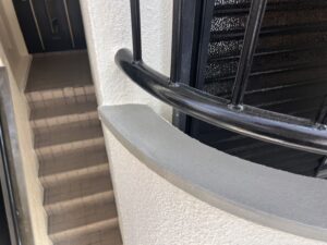 笠木部分も防水塗膜つけるので、ケレンを行っていきます。