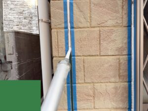 目地の両サイドにきちんと養生テープ貼っていますがこれはシーリング材をたっぷりと注入しますので、はみ出た時に外壁を汚さないためです(#^^#)