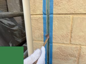 目地の中に、プライマーを塗っています。