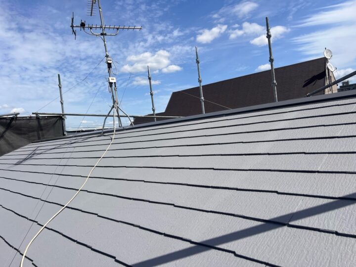 塗りムラのないようにしっかりと塗装していきます。屋根塗装工事 施工完了
