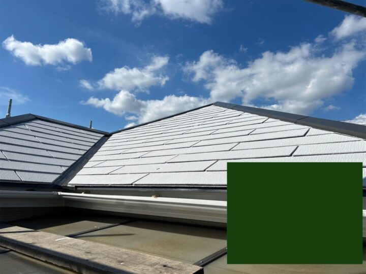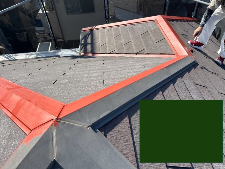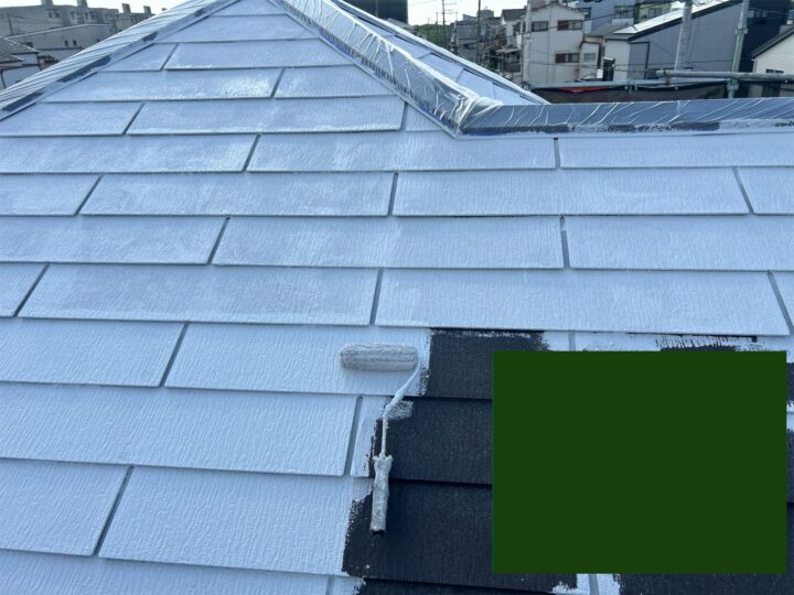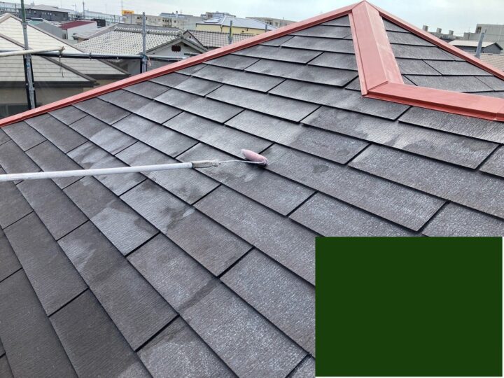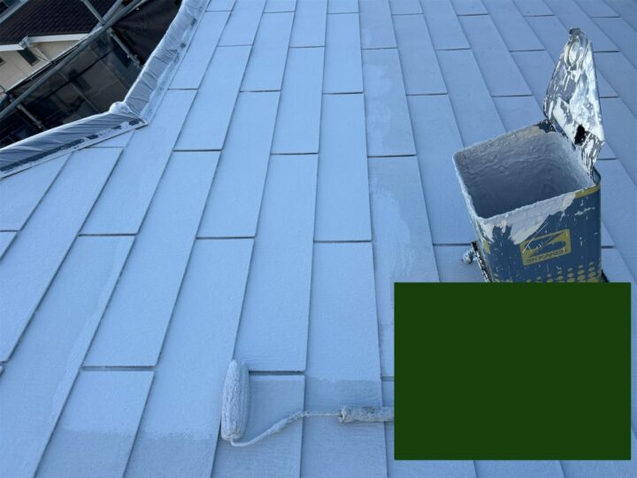 塗りムラのないようにしっかりと塗装していきます。屋根塗装工事 中塗り