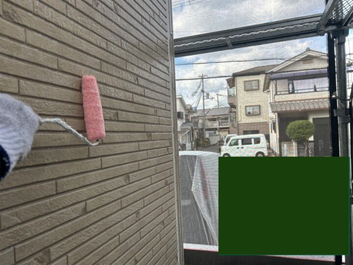 透明の下塗り材を使用しています。外壁塗装工事 中塗り