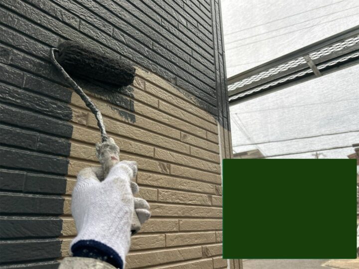しっかりと色を付ける最初の大事な作業となります。外壁塗装工事 上塗り
